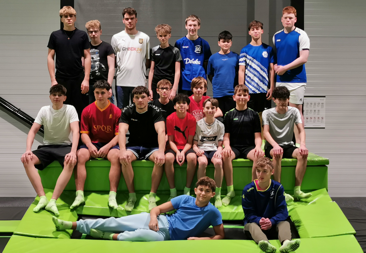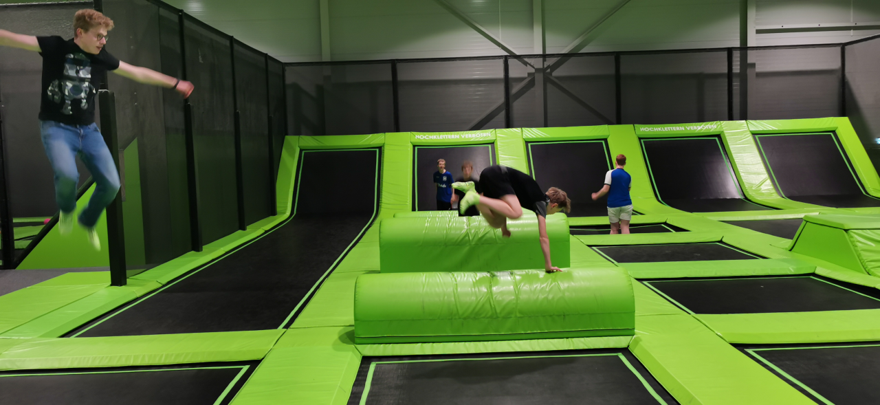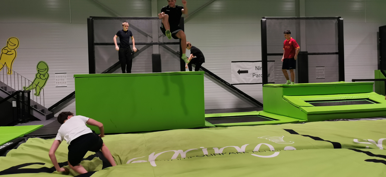 Nach kurzer Einweisung verteilten sich die Jungs über die ganze Fläche. Mit viel Spaß wurde im Big Airbag, Free Jump Bereich, Valo Jump (Kombination Springen mit Videospielen), Ninja Parcour, Dodge Ball Arena und High Nine gesprungen oder gespielt!