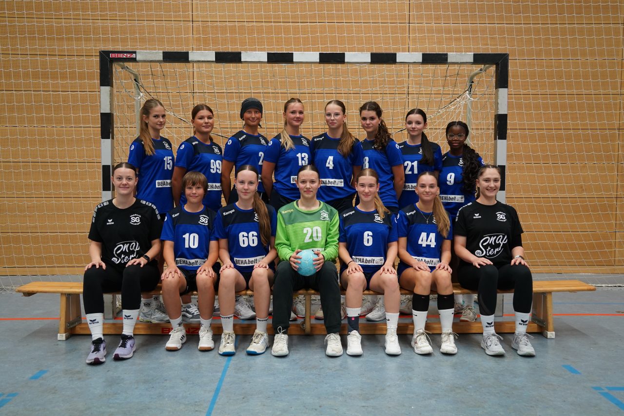 hinten v.l.n.r.: Trainerin Maren Lickert, Vanessa, Julia, Paula, Nicole, Lara, Lena, Lisa, Caterina, Torwarttrainer Uwe Torn
