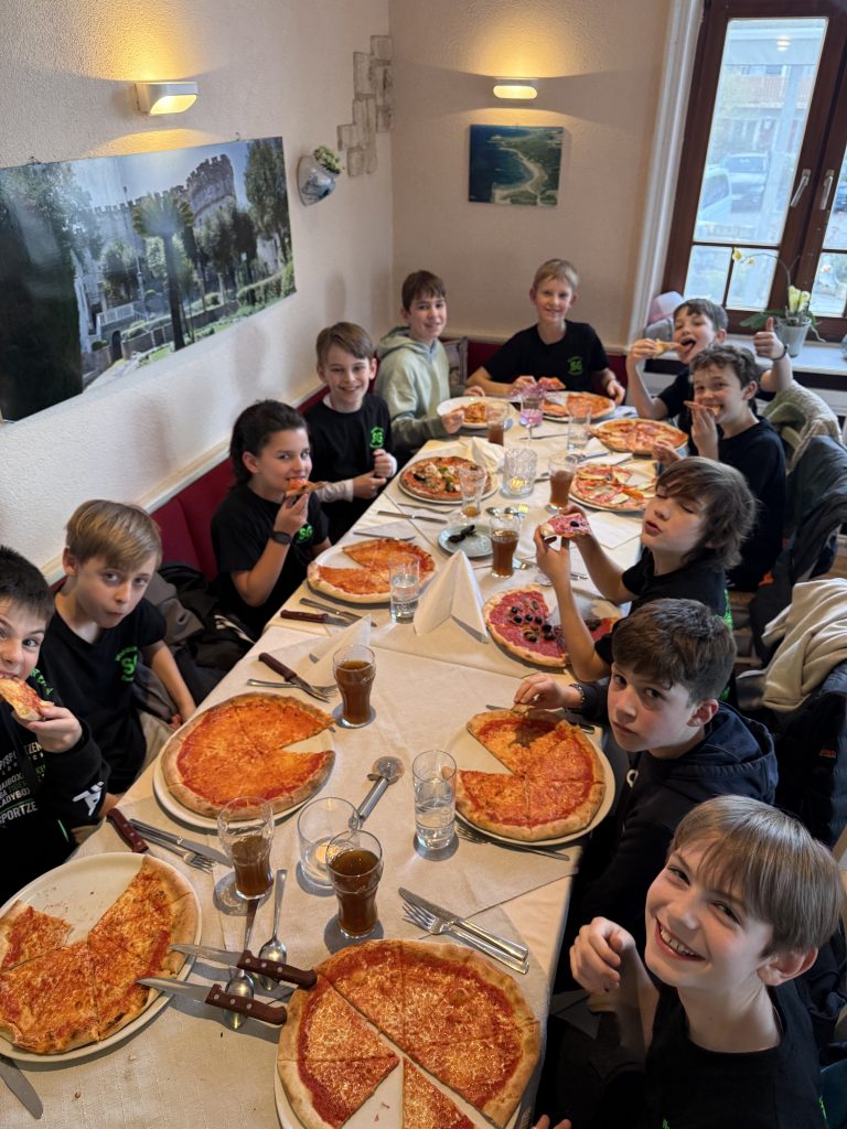 Jeder Spieler durfte auf Vereinskosten eine Pizza und ein Getränk bestellen – was natürlich für große Begeisterung sorgte. Es wurde viel gelacht, erzählt und gemeinsam Spaß gehabt. Der Teamgeist, der die Mannschaft über die gesamte Saison hinweg ausgezeichnet hat, war auch an diesem Abend überall spürbar.