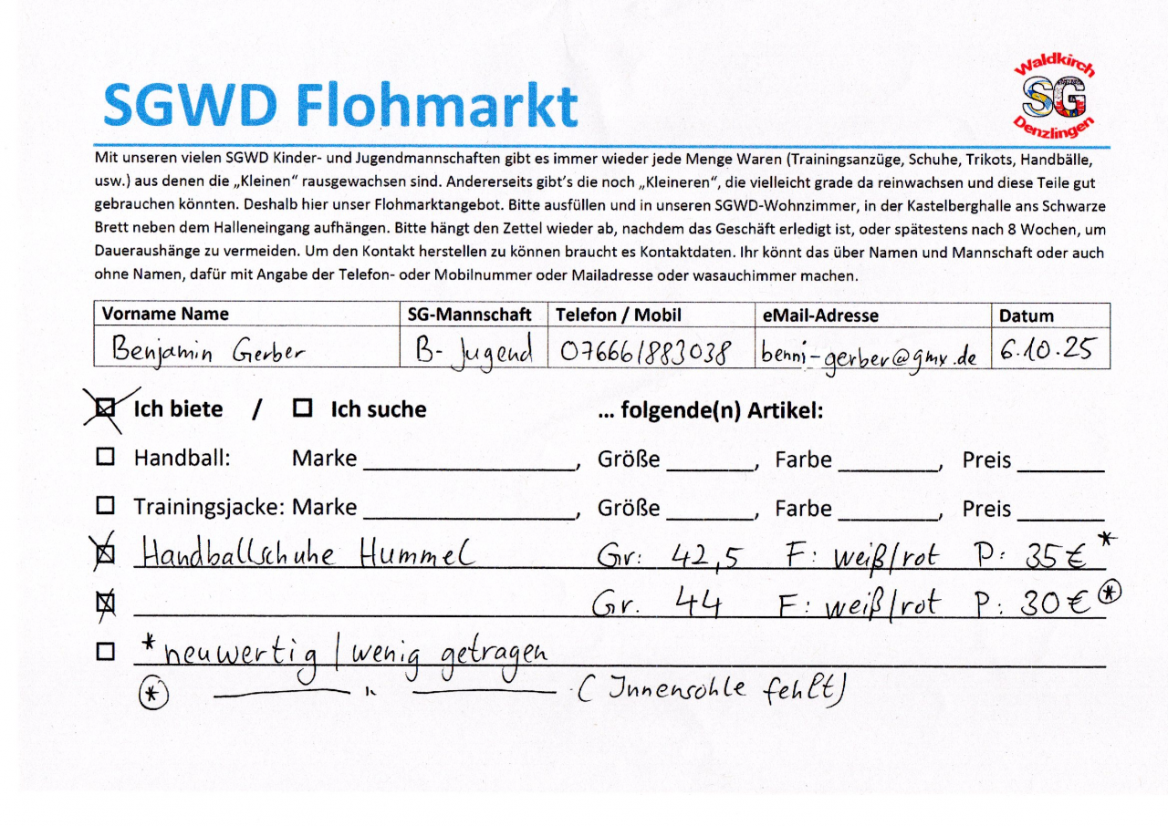 Mit unseren vielen SGWD Kinder- und Jugendmannschaften gibt es immer wieder jede Menge Waren (Trainingsanzüge, Schuhe, Trikots, Handbälle, usw.) aus denen die „Kleinen“ rausgewachsen sind. Andererseits gibt’s die noch „Kleineren“, die vielleicht grade da reinwachsen und diese Teile gut gebrauchen könnten.