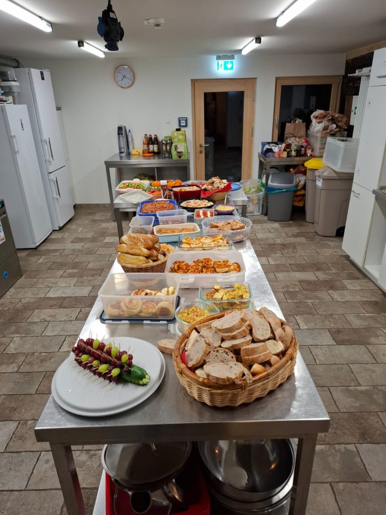Nach dem Eintreffen am späten Freitag Nachmittag, galt es zunächst die Jungs mit der Hausordnung und den Regeln für das gemeinsame Zusammenleben an diesem Wochenende vertraut zu machen, sowie das geplante Programm zu besprechen. Eine gemeinsame Hausführung schloss dann schon diese erste Phase des Ankommens ab. Schnell wurden noch die Zimmereinteilungen festgelegt, die Küchendienste eingeteilt und schon stand die Vorbereitung für das erste Abendessen an. Aufgrund der hervorragenden Unterstützung der Eltern konnte ein leckeres und reichhaltiges Finger-Food-Buffet angeboten werden, das keine Wünsche offen und keine Jungs hungrig zurück lies.